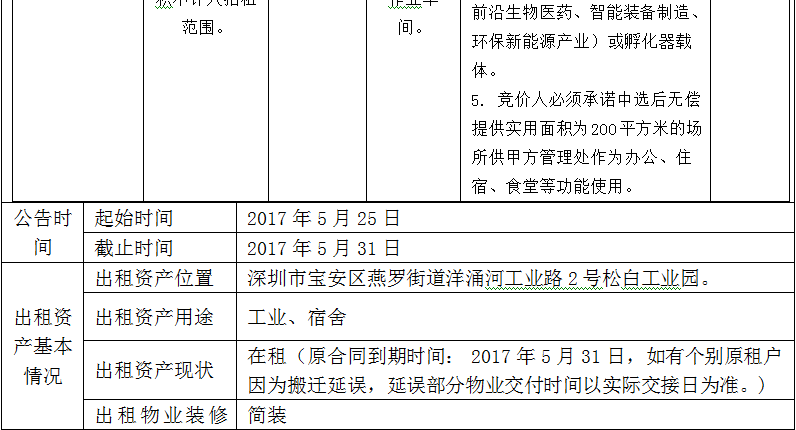 深圳市宝安松白公路有限公司宝安区燕罗街道松白工业园厂房1栋及综合楼部分物业公开招租公告