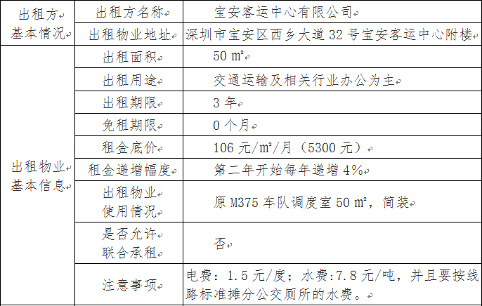 宝安客运中心附楼原M375车队调度室物业自主招租公告