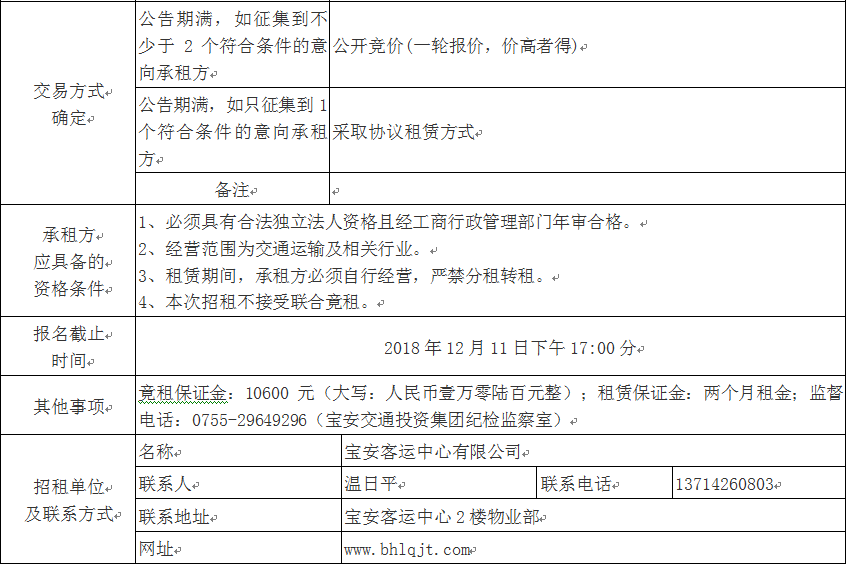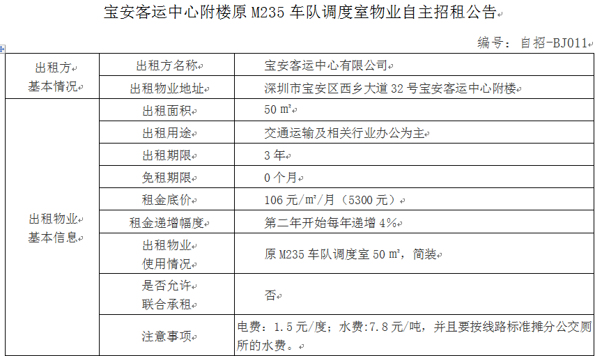 宝安客运中心附楼原M235车队调度室物业自主招租公告