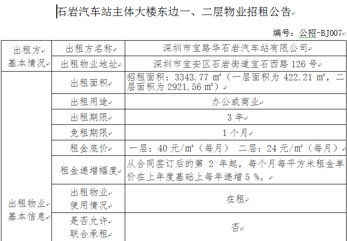 石岩汽车站主体大楼东边一、二层物业招租公告