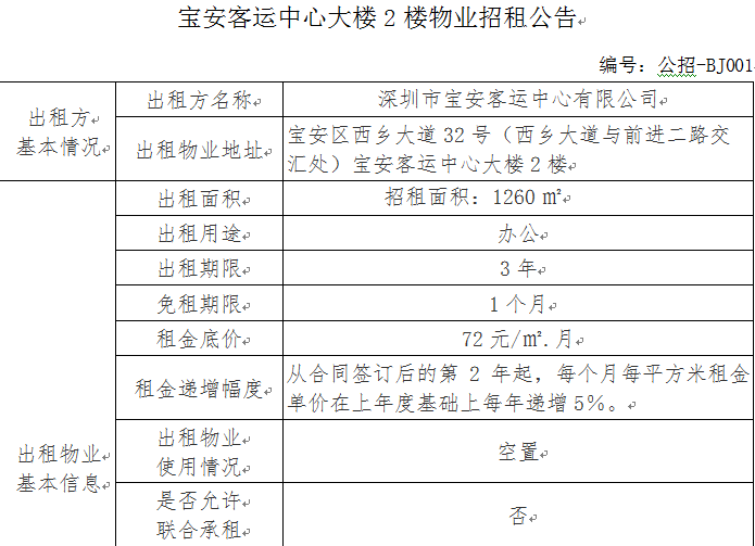 宝安客运中心大楼2楼物业招租公告