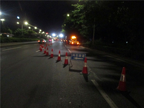 107国道南头检查站至兴围路口路段沥青路面改造后,投入使用已经有16年之久,部分路段沥青老化情况严重。由于今年暴雨天气频繁,降雨量较大,通行车流量大,过往超重车多,特别是5月份受红色预警暴雨天气影响,公司管辖范围内的路段,出现道路水浸21处,造成路面坑洞较多,致使交通堵塞甚至中断等原因,影响过往车辆通行安全。由于近期降雨天气连续,为确保107国道正常行车安全,公司加大了巡查和保养力度,对日常巡查发现的病害,采取临时沥青冷料填充方法施工,缓解了交通安全隐患。为彻底消除安全隐患,保证过往车辆通行安全和舒适,天气好转后,于6月18日夜间,开始对107国道宝安段病害进行小修整治,计划1个月内完成107国道全部病害维修工作,截至7月4日,维修沥青路面近20000平方米。(平通公司  李蕾)