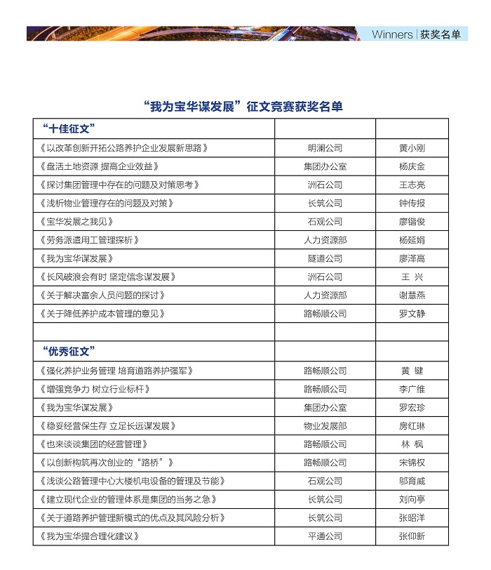 下一阶段,集团将召开表彰会,对此次征文活动的获奖作品及作者予以表彰奖励。(人力资源部 杨延娟)