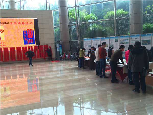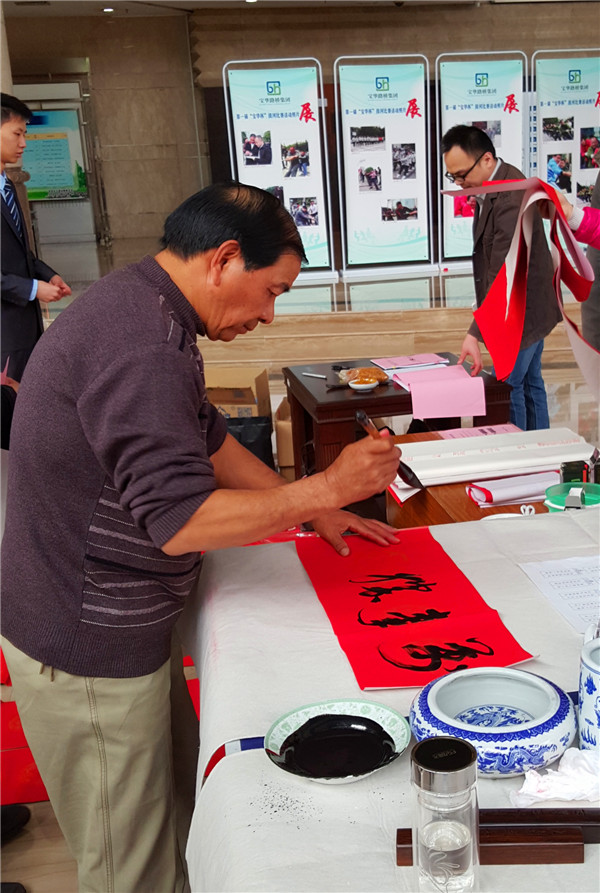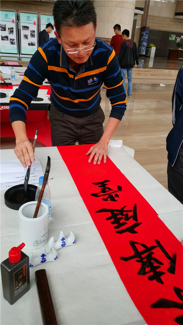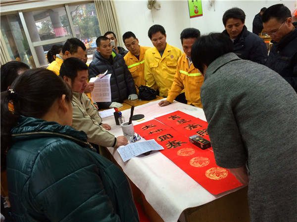 为弘扬中华传统文化,营造欢乐祥和的节日气氛,增强企业凝聚力和员工归属感,集团公司工会筹备组于1月19日至22日在公路管理中心一楼大厅,1月20日至22日、25至27日在各养护工区开展了春联义写活动。在集团领导的大力支持和各单位的积极配合下,活动顺利进行,此次活动受到广大员工的欢迎和好评。(人力资源部 惠敬宁)