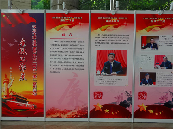 7月25日,市交通运输委主办的《“两学一做”系列活动廉政工作展》,在宝安公路管理中心大堂展出。集团党政领导班子全体成员到现场参观学习。