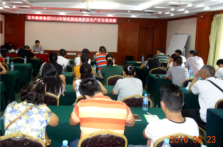 宝华路桥集团“2016年绿化保洁养护及安全生产培训班”于2016年9月23日在海上田园会议中心圆满结束,共有52名一线员工参加培训。