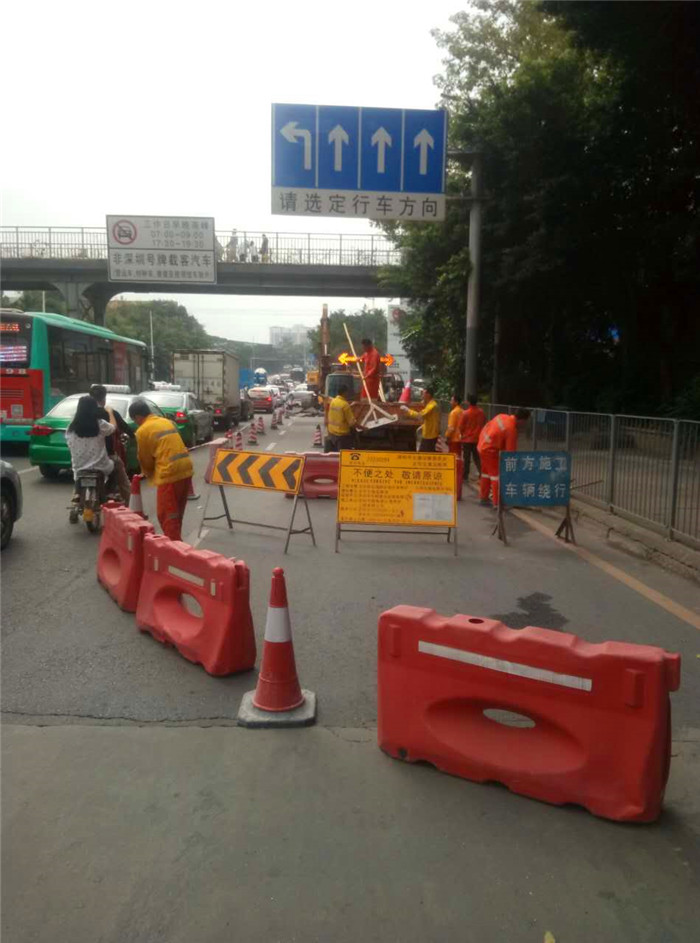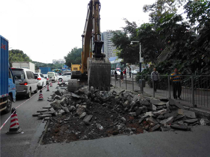 公司小修工程队接报后,立即启动道路抢险应急预案,迅速组织抢险小组赶赴事故现场实施道路抢修,于20分钟后抵达事故现场,并检查现场情况:路面破碎面积约260平方米左右,需补强260平方米,恢复标线约30平方米。因考虑到该路段车流量大,且路面破损面积较大,为确保过往车辆行人安全,现场抢修人员先做好现场安全保障措施迅速隔离破碎路面。然后凿除下沉破损沥青路面及水泥砼路面,现浇早强水泥砼垫层,喷洒乳化沥青粘层油,摊铺改性同步碎石应力吸收层。抢险人员经过2天连续奋战,于2016年11月27日上午完成对该路面破碎的修复工程。(明澜公司    文/黄子文