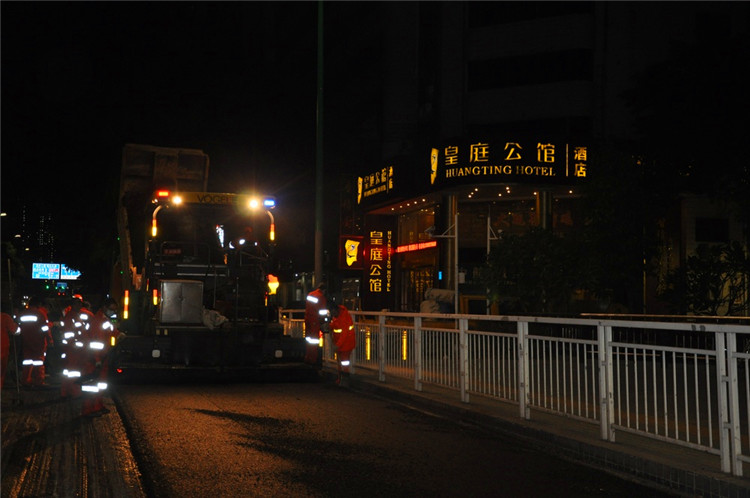 长筑公司错峰作业通宵施工完成沥青摊铺任务