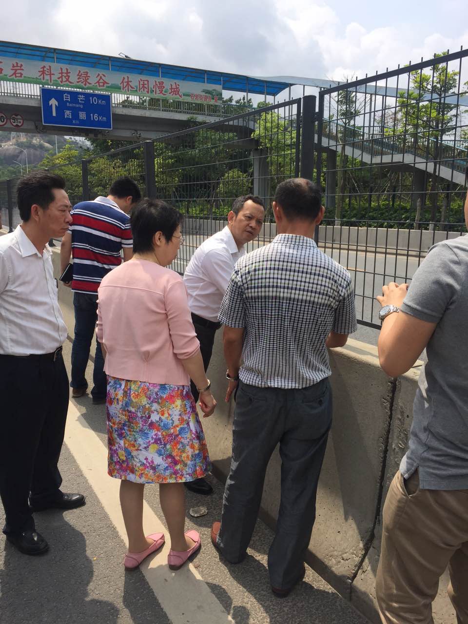 4月21日上午9:20时,宝安交通运输局巫作如局长率相关职能部门开展“行走宝安”活动,现场检查了我司管养的龙腾路、松白路、宝石路、创业二路的整体路况。长筑公司分管养护工作的凌庆基副经理陪同检查。