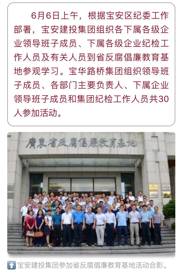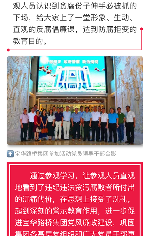 宝华路桥集团组织党员领导干部参观反腐倡廉教育基地