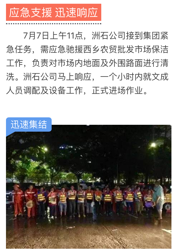 洲石公司圆满完成西乡农贸批发市场应急保洁任务