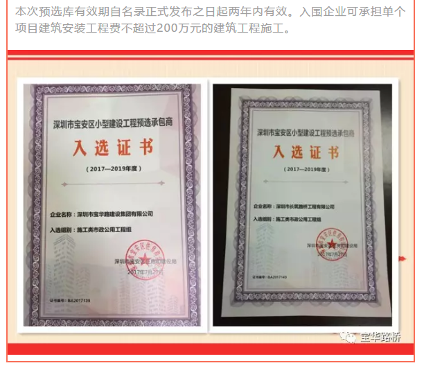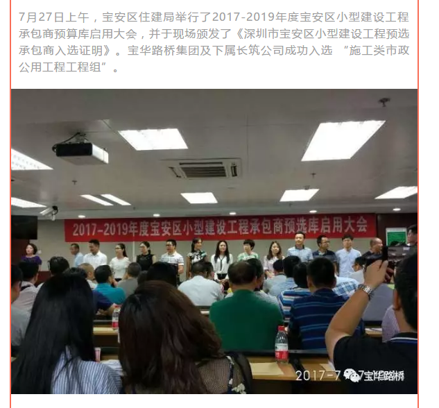 集团成功入选宝安区住建局小型建设工程预选承办商