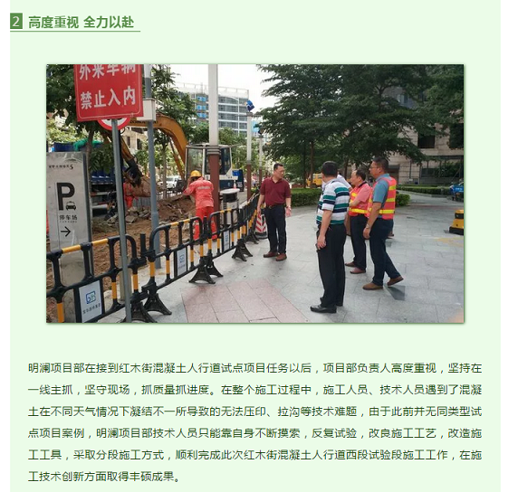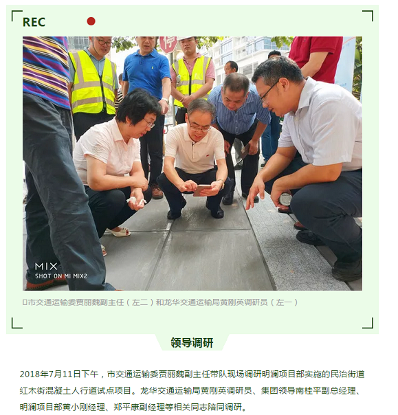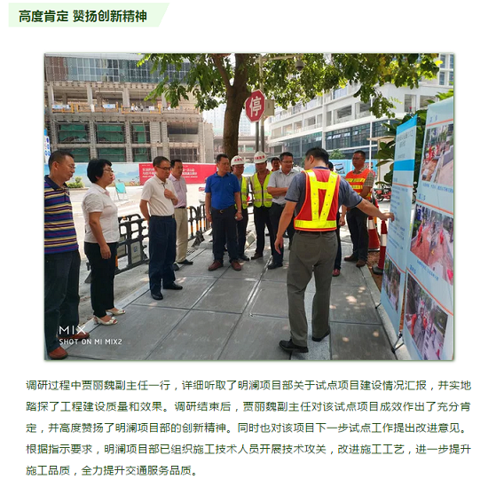 市交通运输委贾丽魏副主任带队现场调研明澜项目部民治街道红木街混凝土人行道试点项目