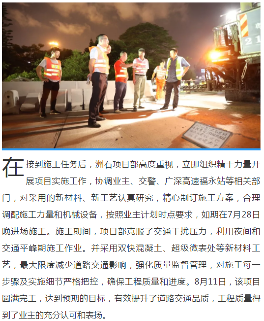 洲石项目部圆满完成广深高速福永出口联络段交通环境整治项目