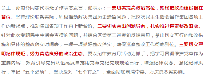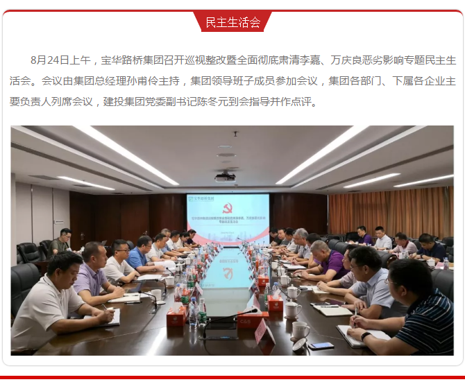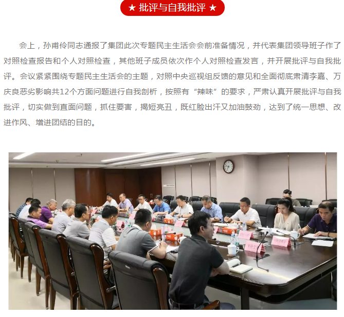 集团召开巡视整改暨全面彻底肃清李嘉、万庆良恶劣影响专题民主生活会