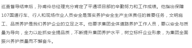 集团总经理孙甫伶率队前往107国道开展道路养护巡查督导