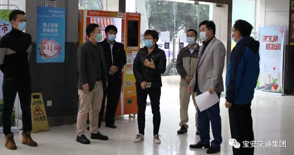 2月4日,宝安区政府副区长梁敏华到宝安客运中心站检查新型冠状病毒感染的肺炎疫情防控工作落实情况,并指导企业(汽车站)做好应对措施。宝安交通集团党委书记、董事长汤岳波,集团副总经理苏毅,宝投交通公司总经理钟国强等参加检查。